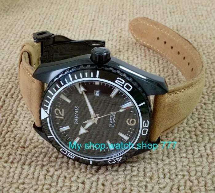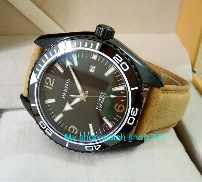 sapphire Crystal 45mm PARNIS Japanese 21 Jewels Automatic Self-Wind Mechanical movement ceramics Be